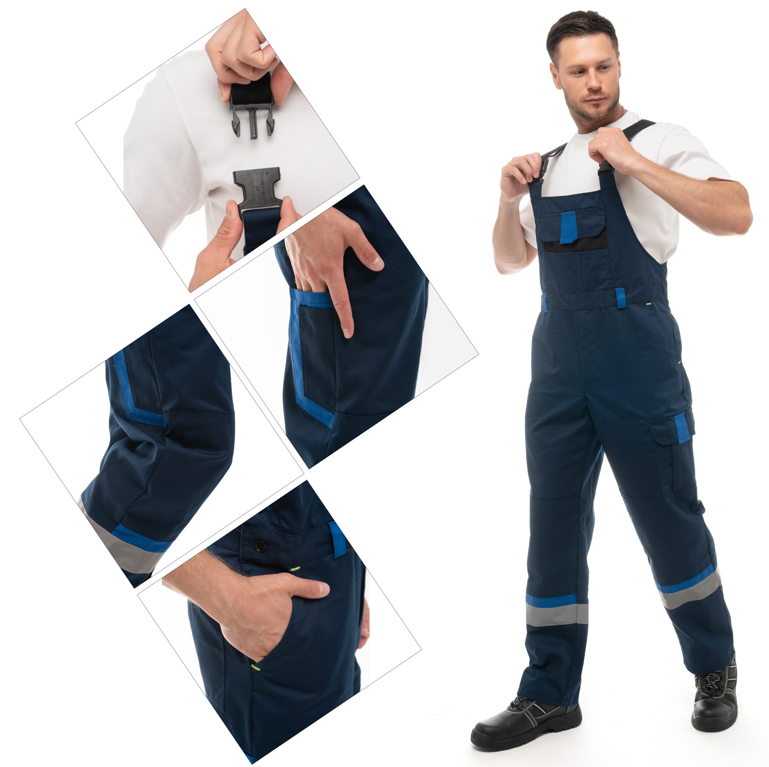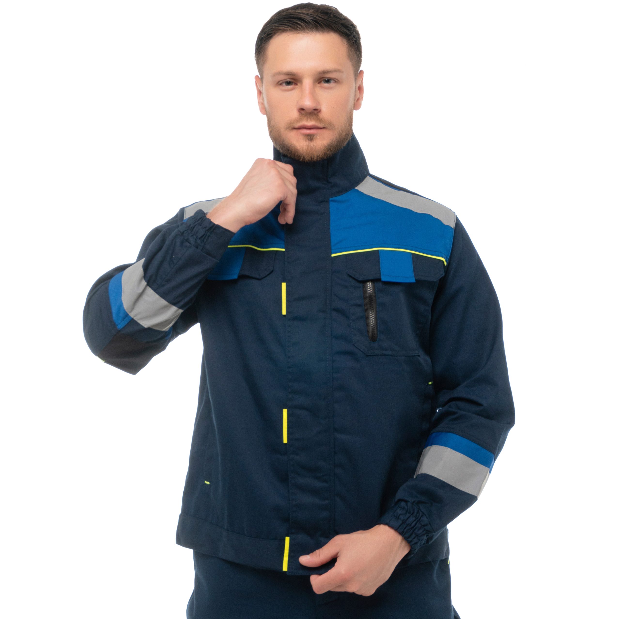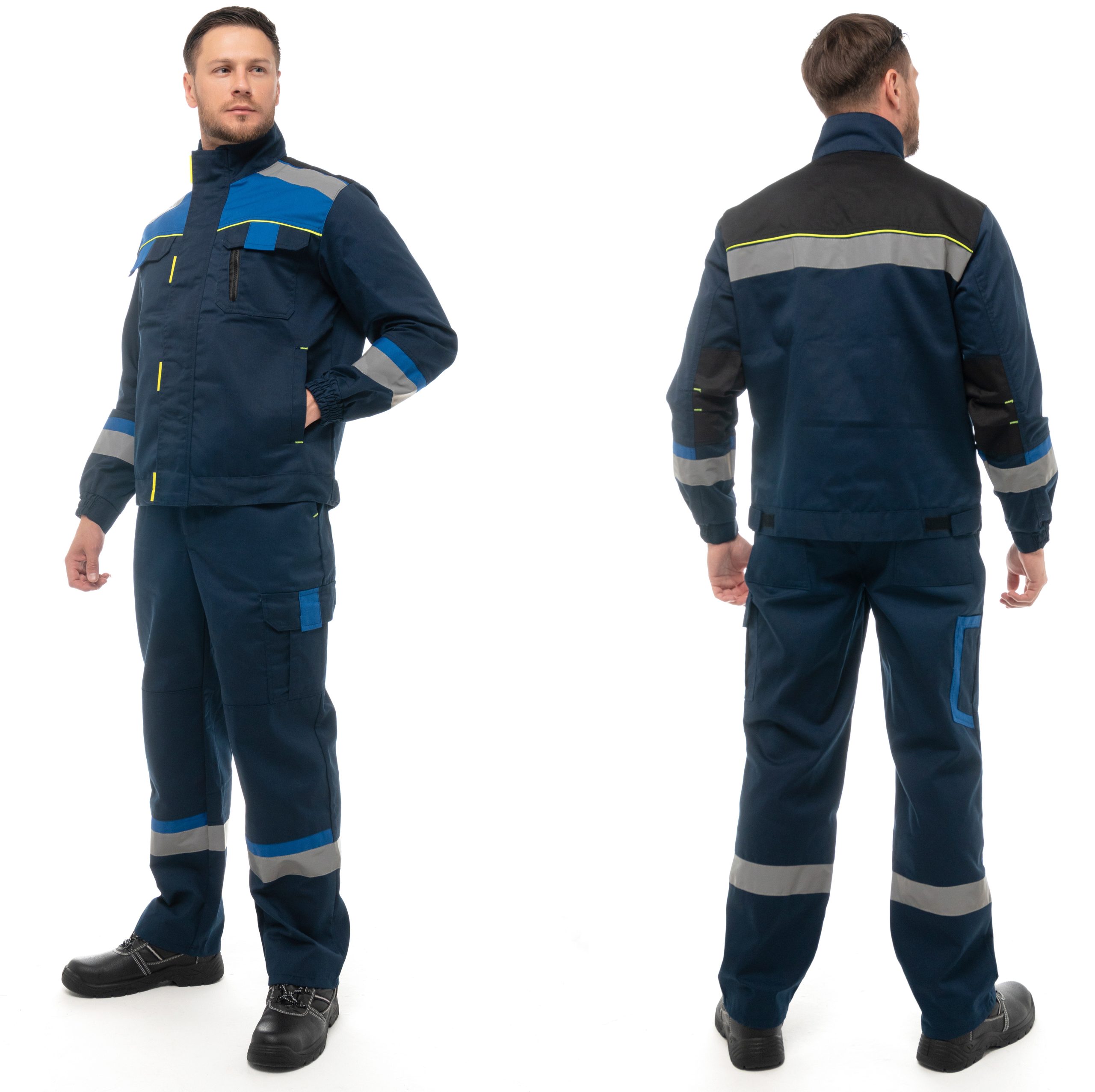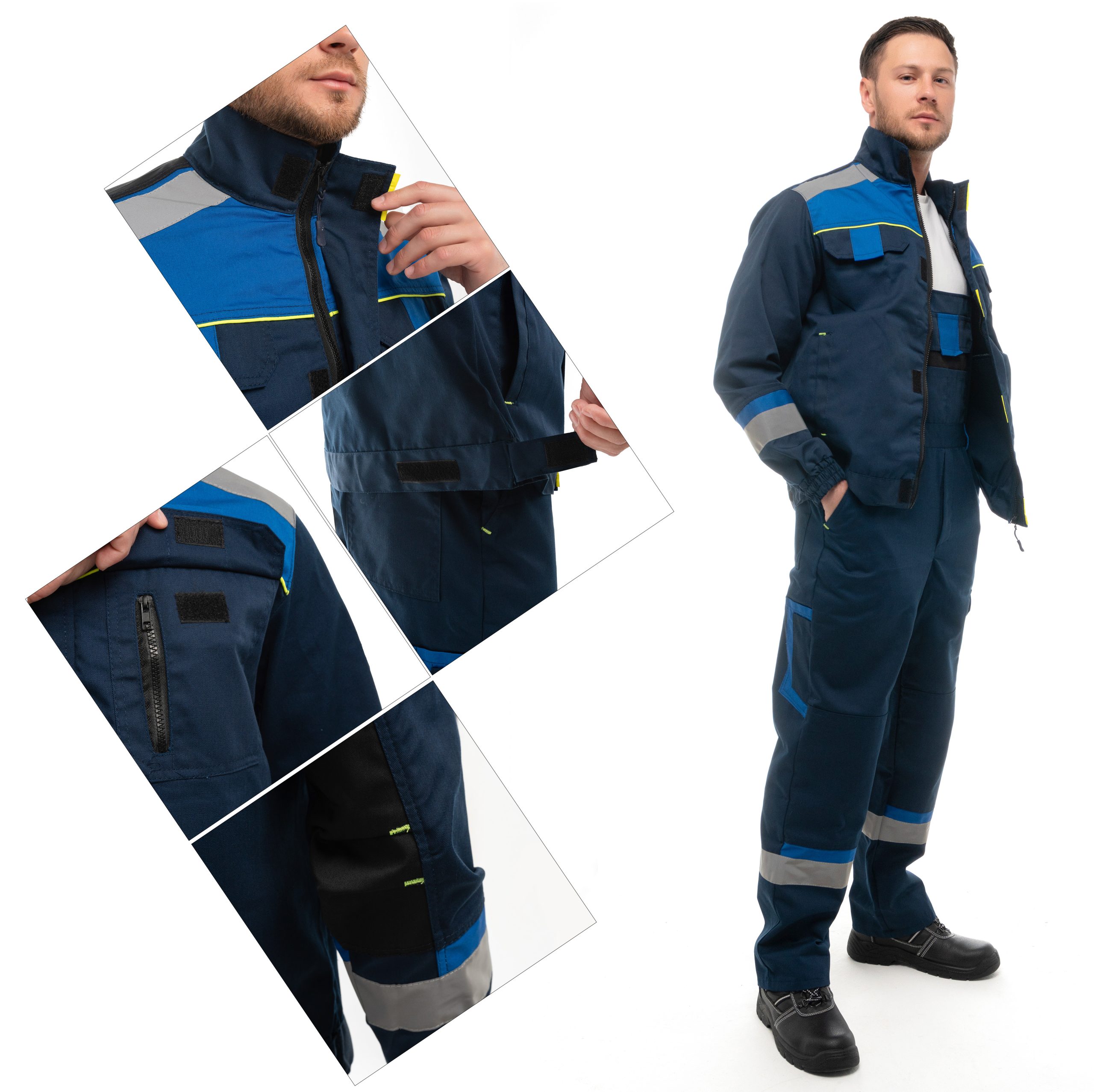 Цвет — синий с васильковым изготовлен в соответствии с ГОСТ 12.4.280-2014, ТР ТС019/2011 и включает 2 предмета: куртка, полукомбинезон. Центральная застежка куртки — молния Трактор №5 , закрытая ветрозащитной планкой на липучках. Нагрудные накладные карманы на молнии и фигурные клапаны на липучку, карман в рамку с фигурным клапаном на липучке. Рукава с манжетами с частичной стяжкой на эластичную резинку. Усилительные накладки на локтях. На поясе куртки регулировка по ширине хлястиками и липучкой. Гульфик застегивается на молнию и в правом боковом шве на пуговицы. Эластичная резинка по спинке. На комбинезоне бретели на пластиковых застежках (фастексах), регулируются по длине за счет эластичной резинки. Световозвращающая лента шириной 50 мм и декоративные элементы.